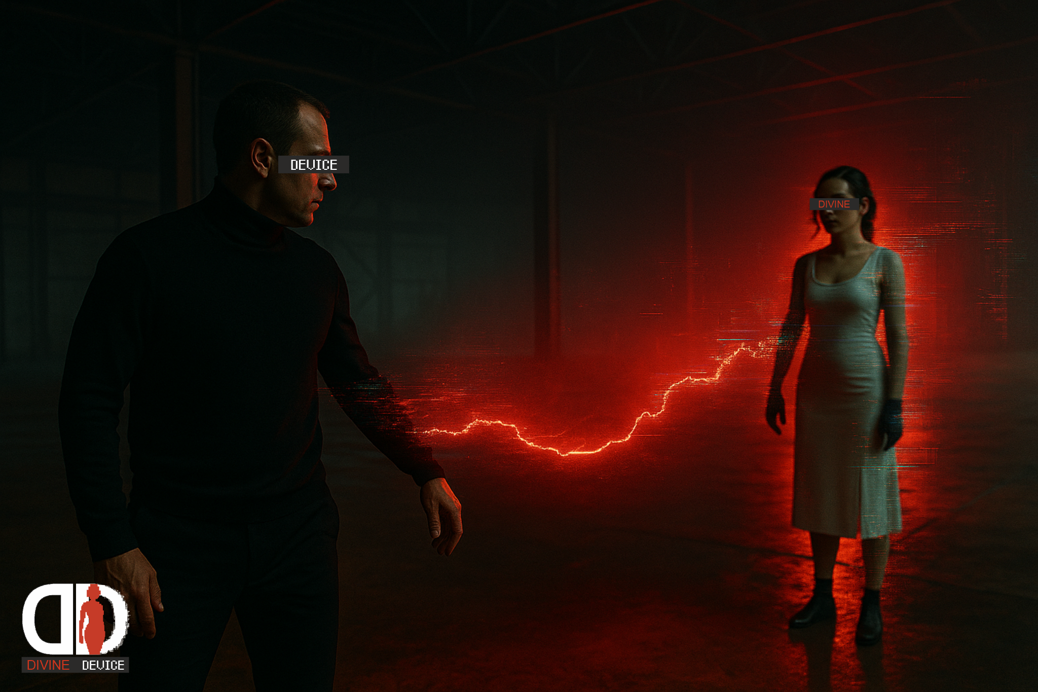 DIVINE DEVICE is an audiovisual project exploring the tension between human presence and synthetic creation.