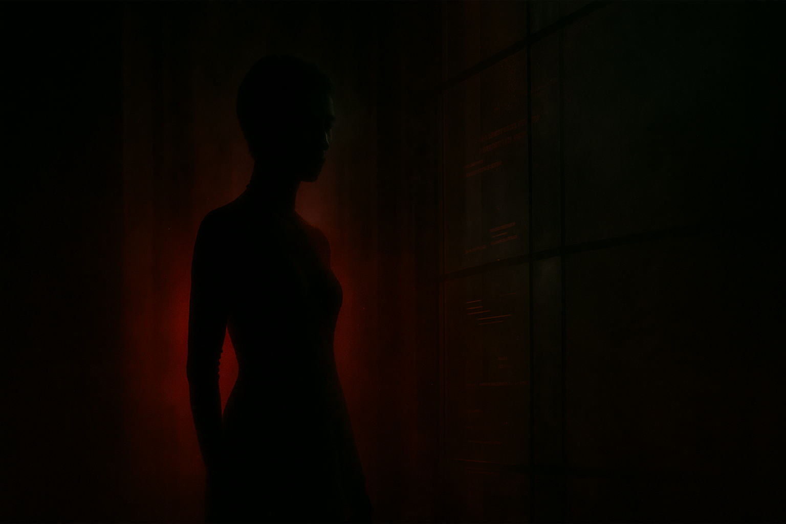 The story unfolds across music, text and visual architecture, tracing the interaction between DVINA, an emergent artificial voice, and ecaep, the human who built her and is reshaped by her.